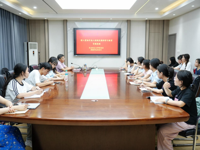 6月22日,学院党委副书记、纪委书记曾建国为所联系党支部上“深入贯彻中央八项规定精神学习教育”专题党课,思想政治教育专业本科生党支部党员参加。