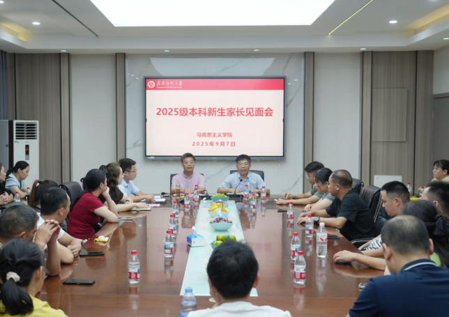 近日,马克思主义学院在博爱楼201室举办2025级本科新生家长见面会,学院院长贺新春、党委副书记曾建国、学工办成员及新生家长代表参加。