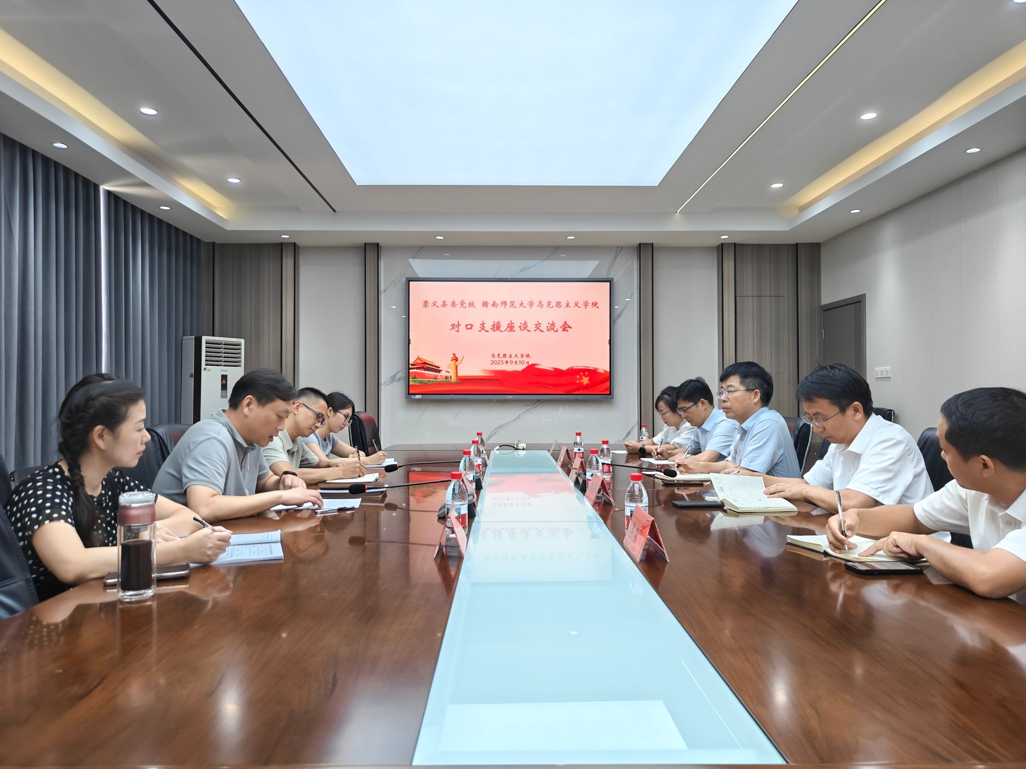 近日,崇义县委党校常务副校长罗旺一行来我院开展对口支援座谈交流,学院院长贺新春、副院长康安峰及思政课教师代表参加座谈。