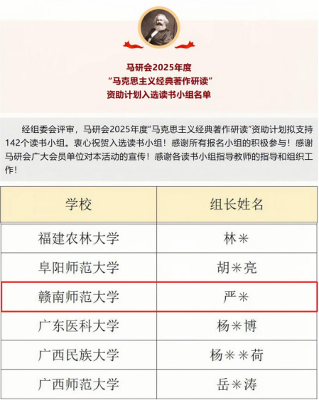 近日,中国高等教育学会马克思主义研究分会2025年度“马克思主义经典著作研读”资助计划名单正式公布,来自全国各高校共计142个读书小组入选。其中,在学院精心组织与培育下,由程小强老师指导申报的“映山红”读书小组成功入选。