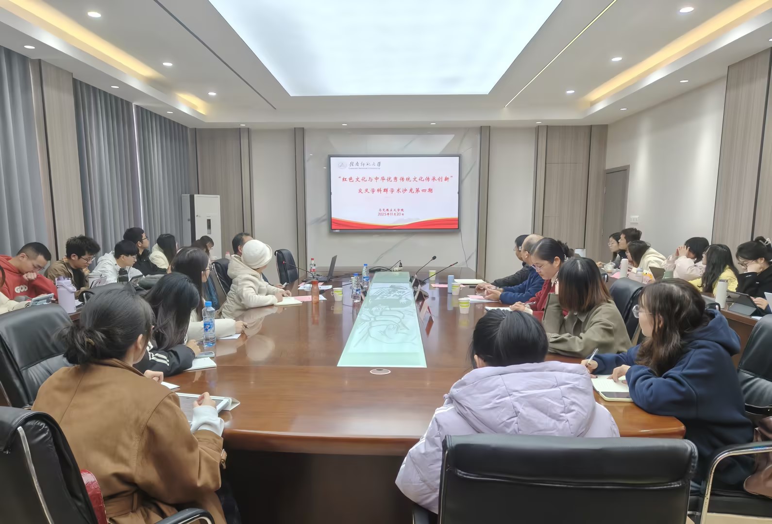 近日,“红色文化与中华优秀传统文化传承创新”交叉学科群第四期学术沙龙在博爱楼201会议室顺利举行。中国人民大学法学院教授赵晓耕、西北政法大学法治学院教授刘全娥应邀作主旨发言,马克思主义学院教师代表及马克思主义理论硕士研究生参加会议。