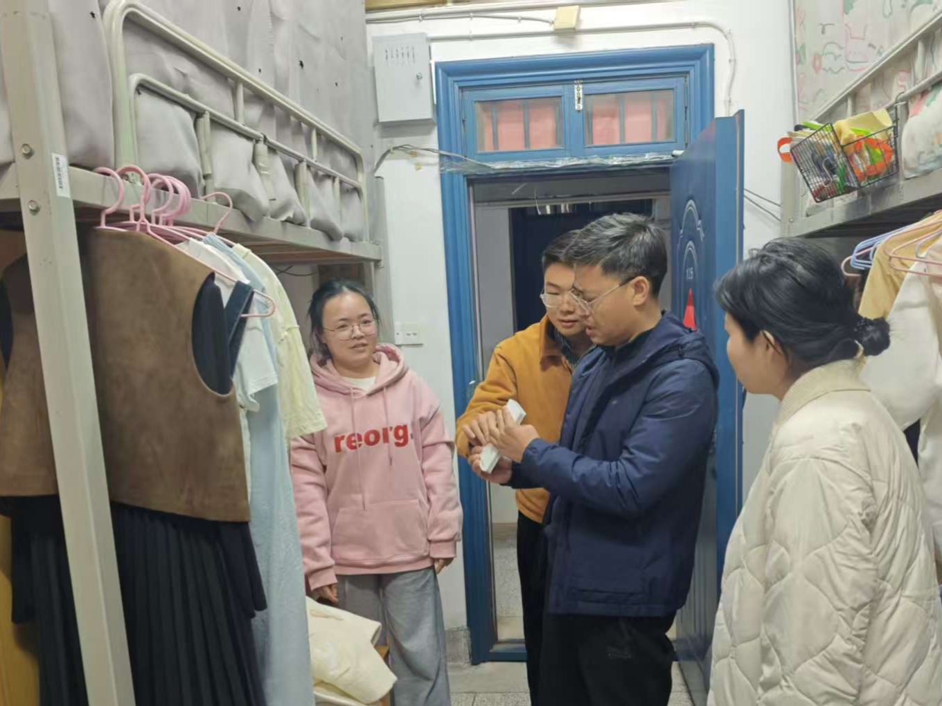 为了进一步加强学生寝室管理,给同学们的学习与生活提供有力保障,近日,马克思主义学院党委副书记曾建国带领学工办老师深入走访学生寝室,开展安全隐患排查工作。
