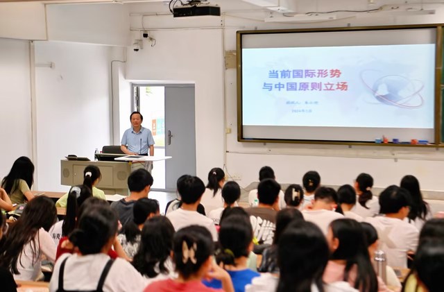 5月30日,校党委书记朱小理以“当前国际形势与中国原则立场”为题,为马克思主义学院思想政治教育专业公费师范生讲授“形势与政策”课。