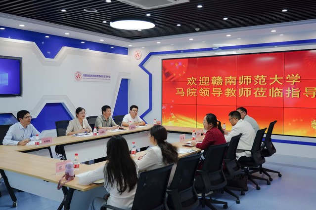 在安徽大学马克思主义学院,刘国钰一行参观了该院安徽省高校网络思想政治工作中心,随后双方举行座谈会,就思政课建设、实践教学、人才培养和高层次人才引进等内容开展交流。