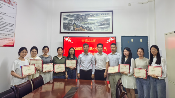 近日,马克思主义学院在博爱楼124室举行2025届学生就业联络员聘任仪式,学院党委副书记曾建国、毕业班辅导员、班主任及就业联络员参加。