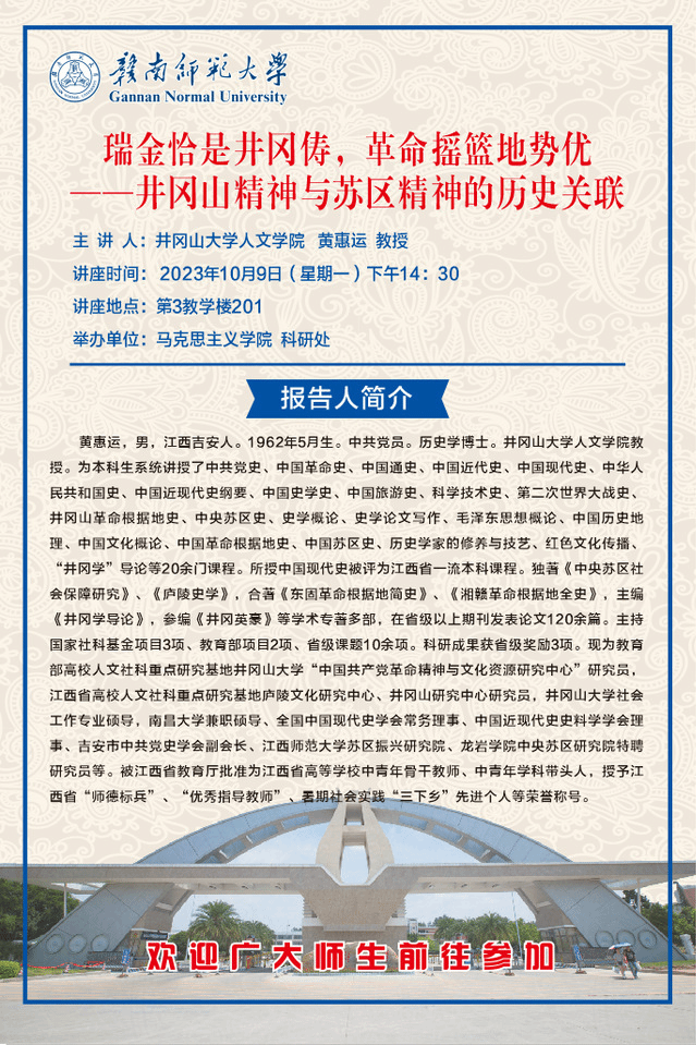 学术报告:瑞金恰是井冈俦,革命摇篮地势优——井冈山精神与苏区精神的历史关联